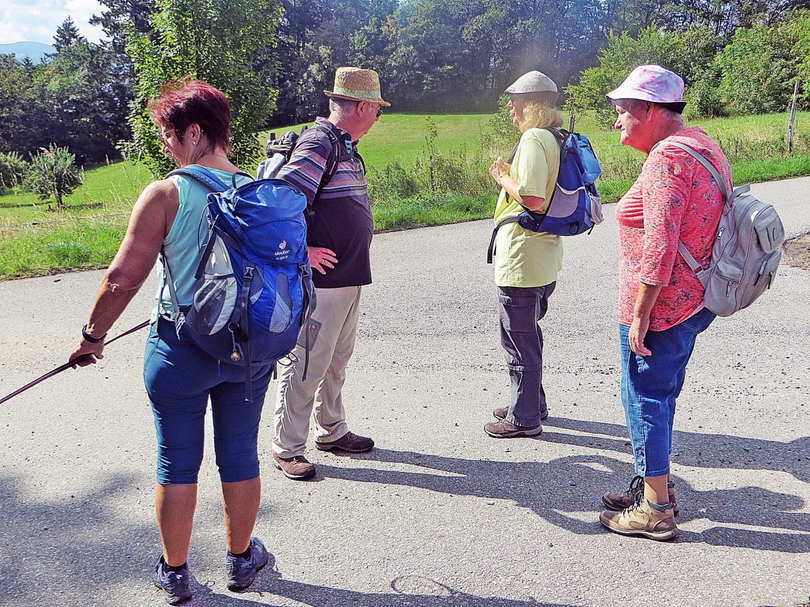 Die Wandergruppe begann ihre Nachmittagswanderung als „Senioren-Gesundheitswandergruppe“ gleich mit einer „Aufwärmgymnasik“ – siehe Bild.